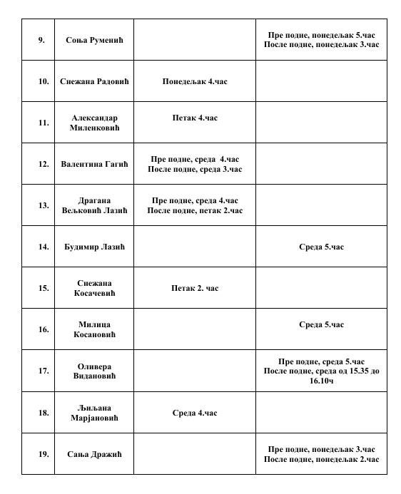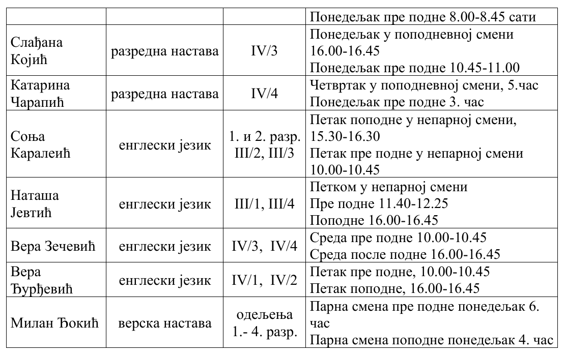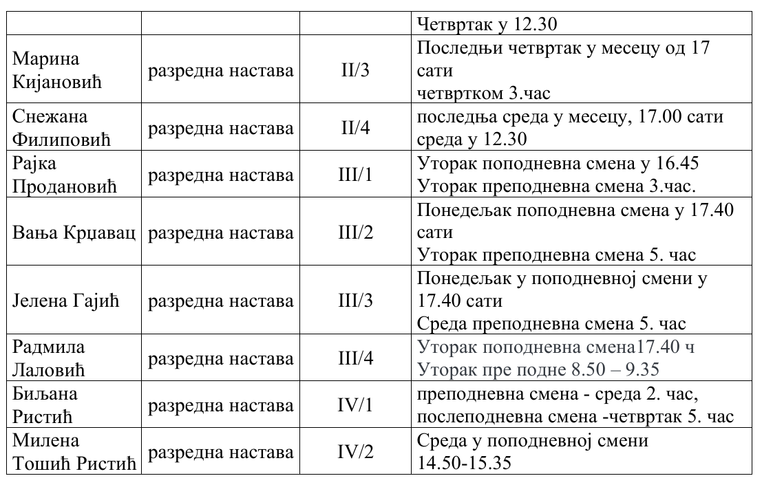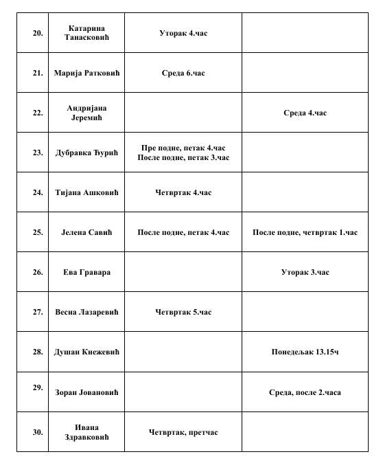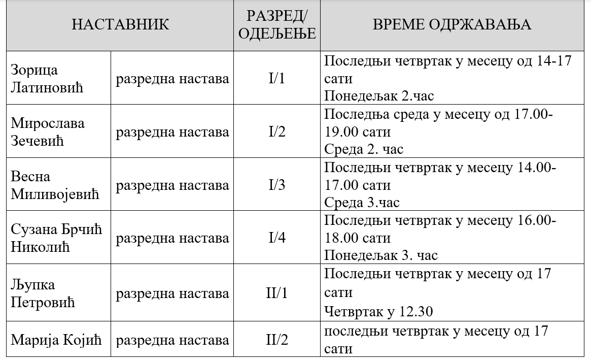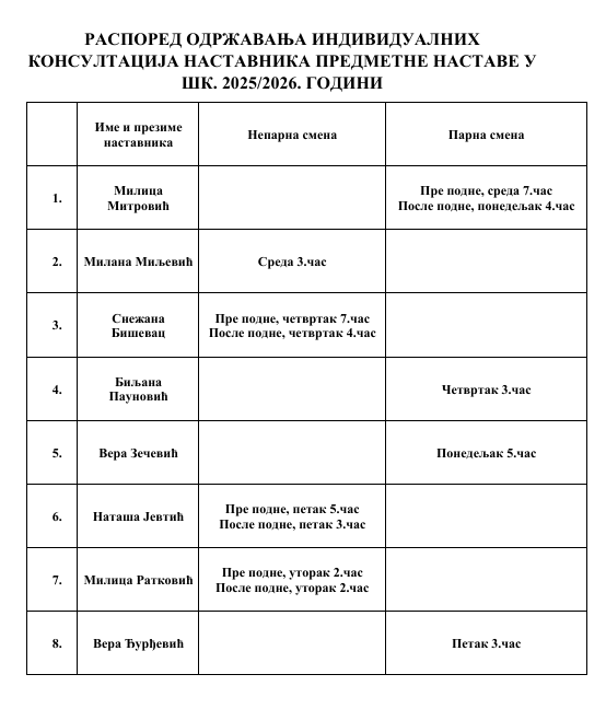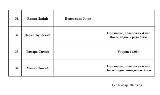 РАСПОРЕД ОДРЖАВАЊА ОТВОРЕНИХ ВРАТА У ШК. 2025/2026. ГОДИНИ