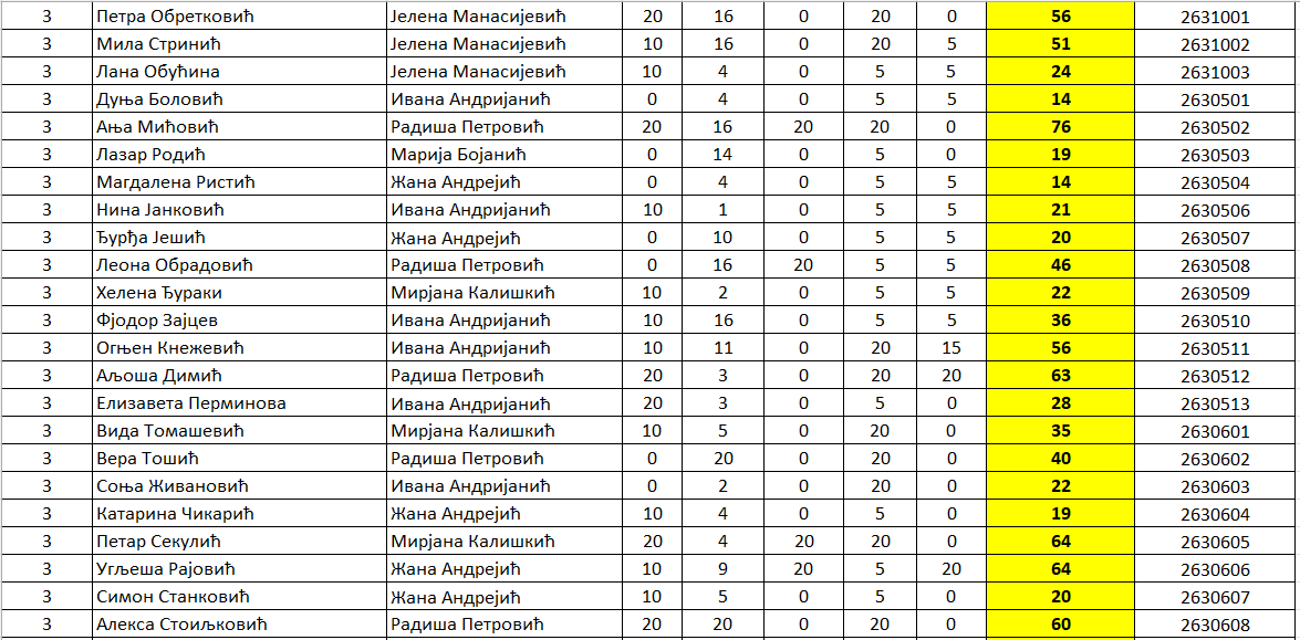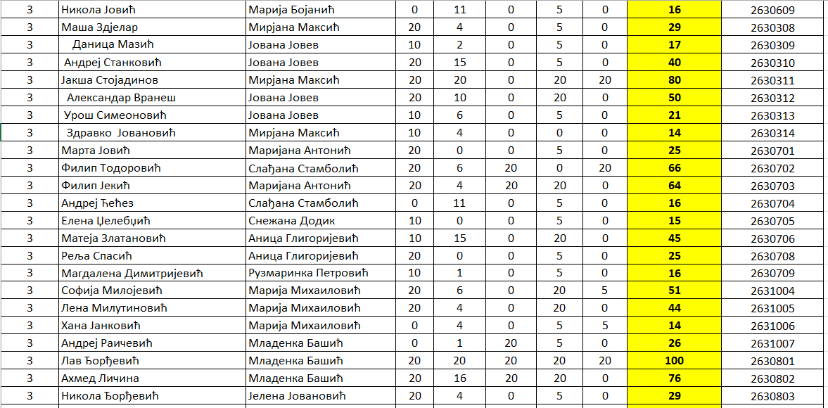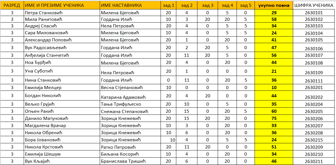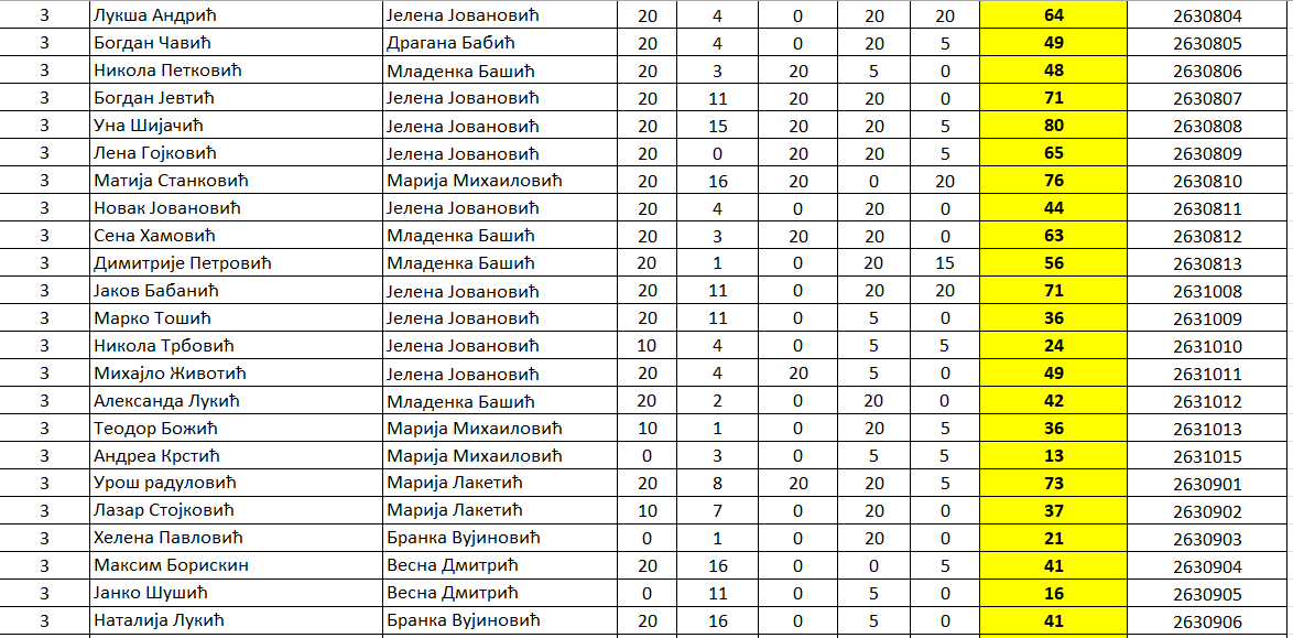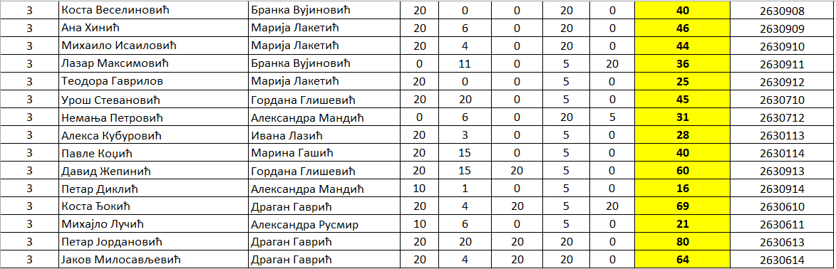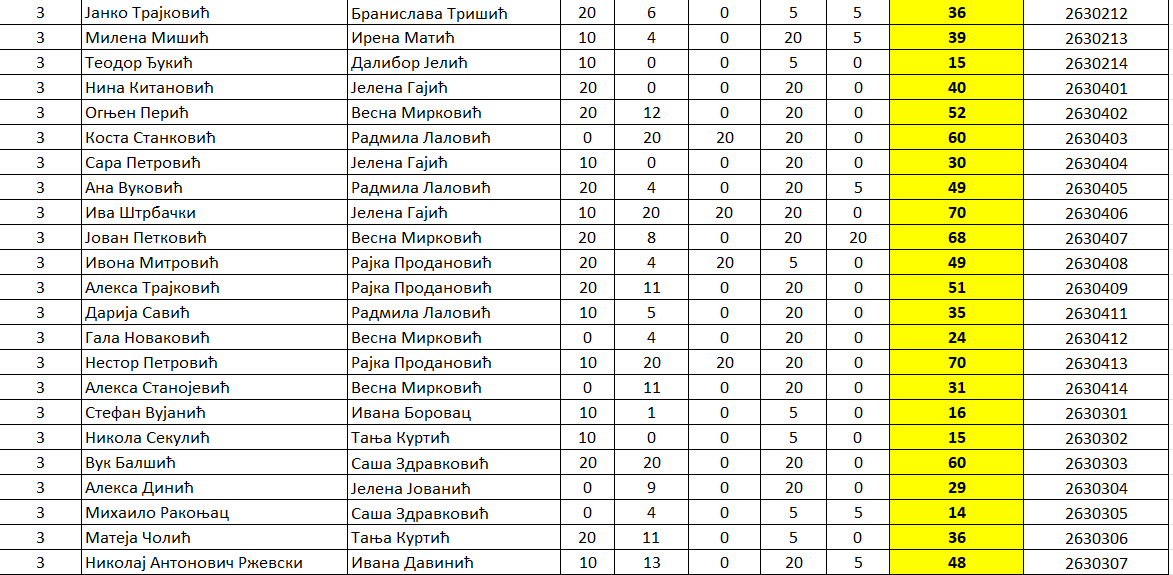 Прелиминарни резултати Општинског такмичења из математике за 3.разред
