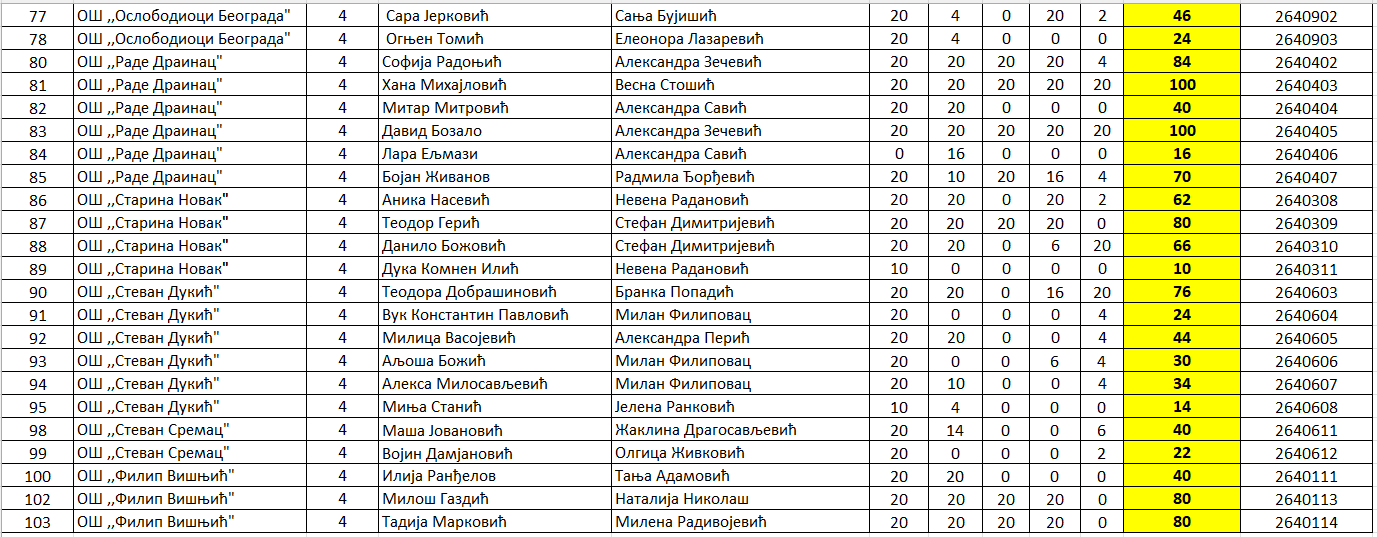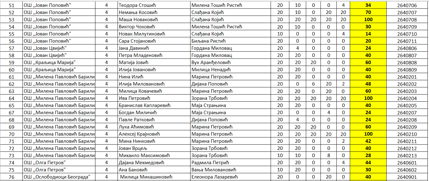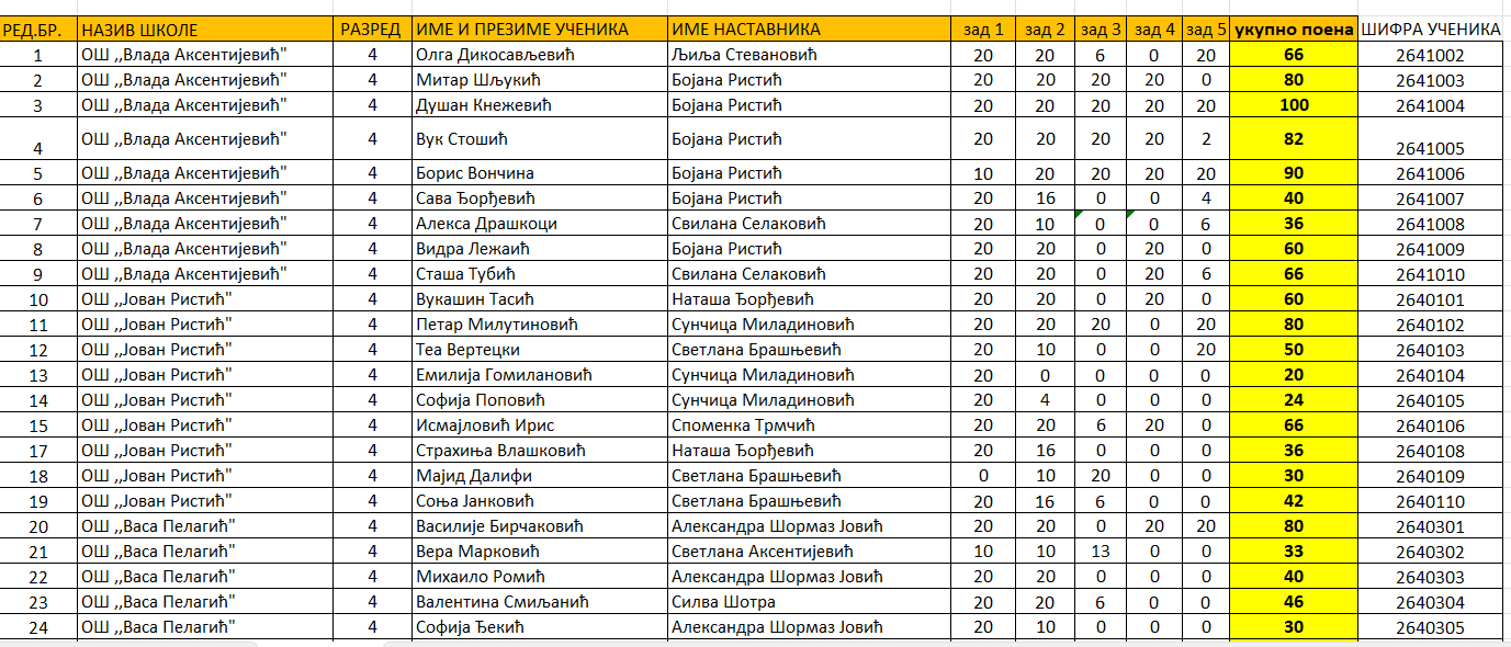 Прелиминарни резултати Општинског такмичења из математике за 4.разред